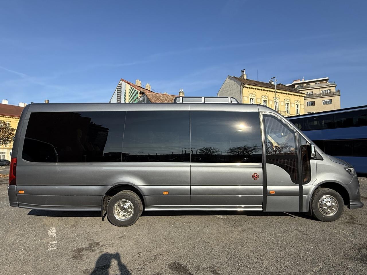 Prodloužený XXL + 45 cm; 21 míst (19+1+1), délka 7,9 m, XXL kufr 3.100 litrů