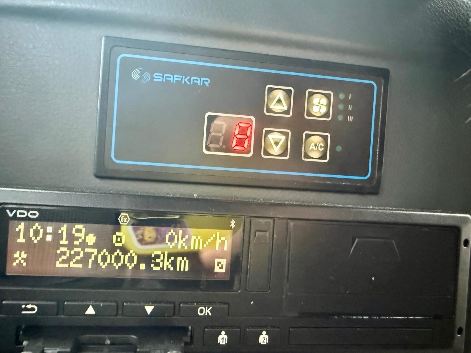 Air conditioning, DVD, Sleepers seats, Luxury seats, Seatbelts, Cruise control, Retarder, Auxiliary heating, Trailer coupling, Full service record, ABS, ASR, ESP