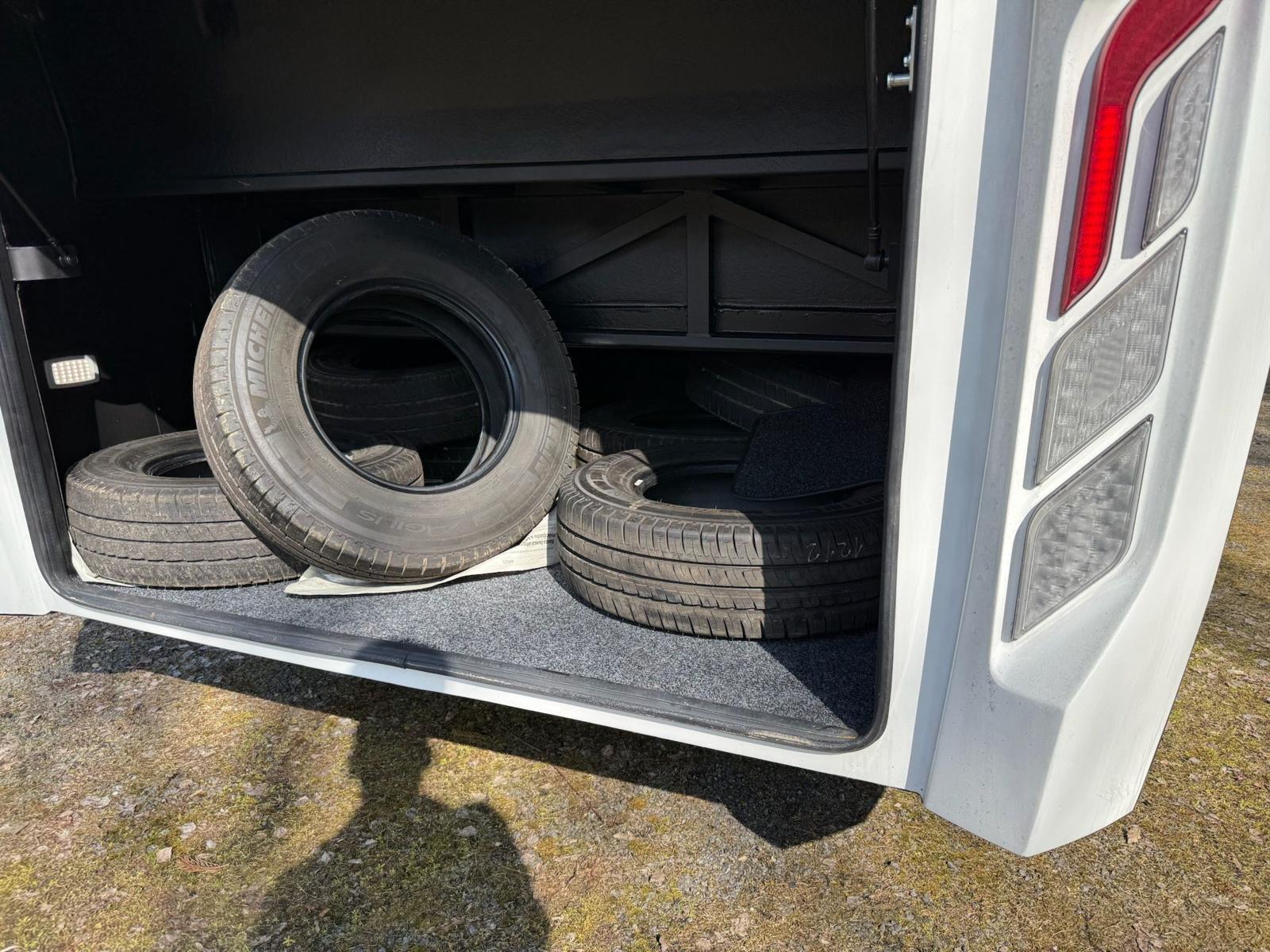 Air conditioning, Cold store, DVD, Luxury seats, Seatbelts, Cruise control, Auxiliary heating, Full service record, ABS, ASR, ESP, ART: Adaptive Cruiser, FCG Collision Guard, SPA: Lane Assist, ABA 3: Active Brake Assist., BAS: Brake Assist., ATAS: Attention Assist., TMPS: Tire Preasure