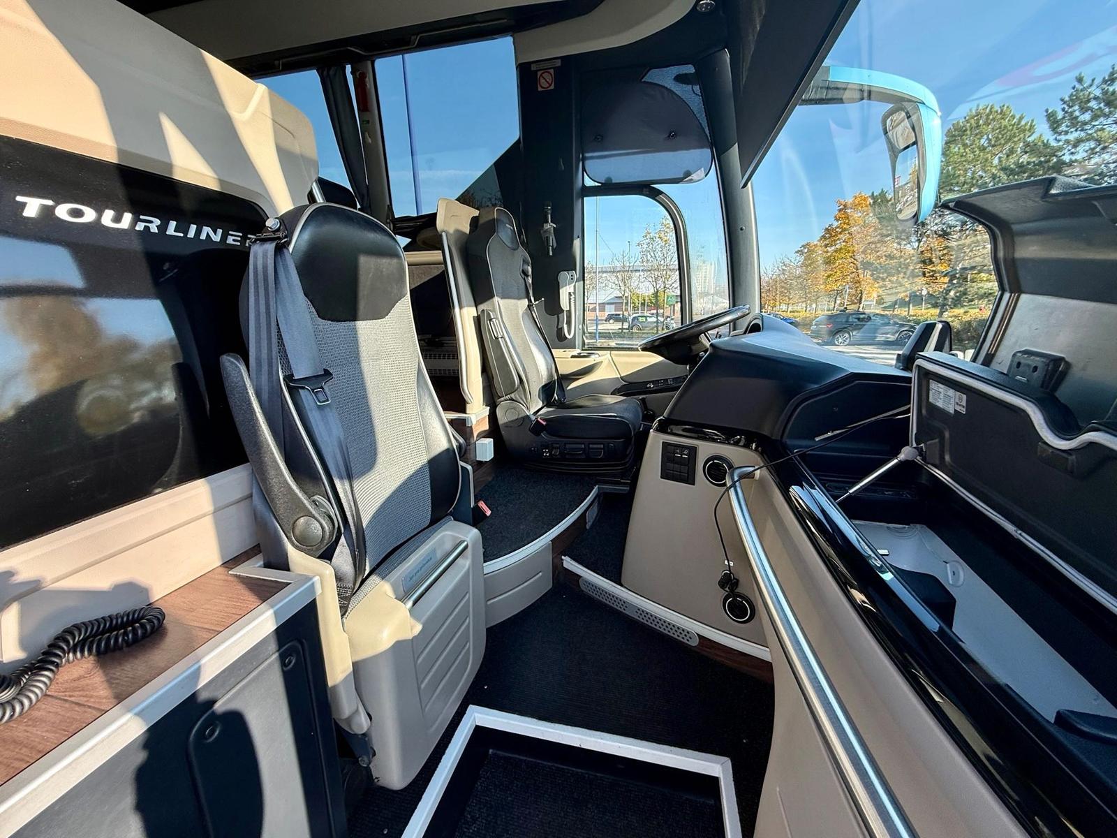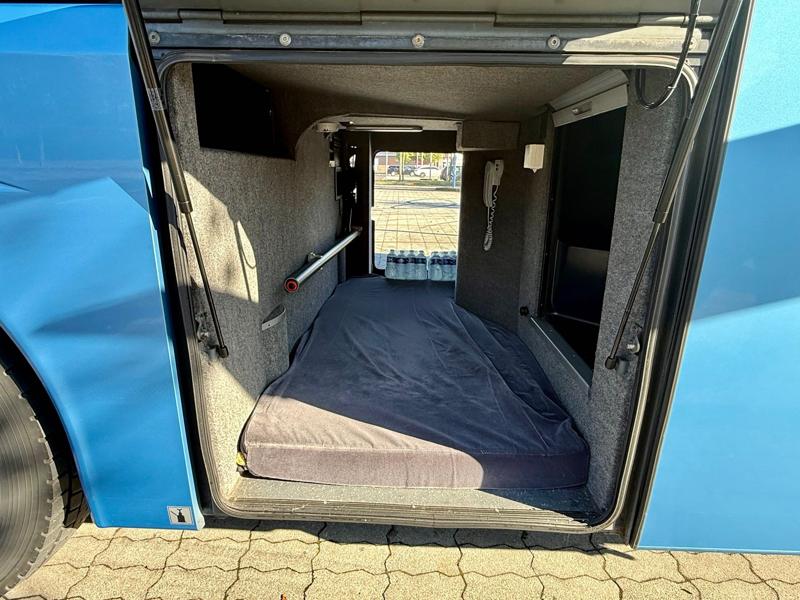 Coffee machine, Air conditioning, Kitchen, Cold store, Drivers sleeping compartment, DVD, TV , WC, WiFi, Navigation GPS, Sleepers seats, Luxury seats, Seatbelts, Cruise control, Retarder, Auxiliary heating, Trailer coupling, Skibox, Full service record, ABS, ASR, ESP, USB for passengers, ART: Adaptive Cruiser, FCG Collision Guard, SPA: Lane Assist, ABA 3: Active Brake Assist., BAS: Brake Assist., ATAS: Attention Assist., TMPS: Tire Preasure