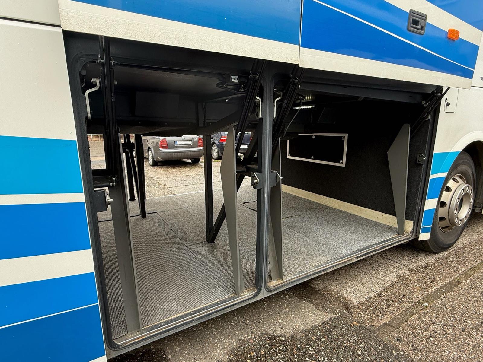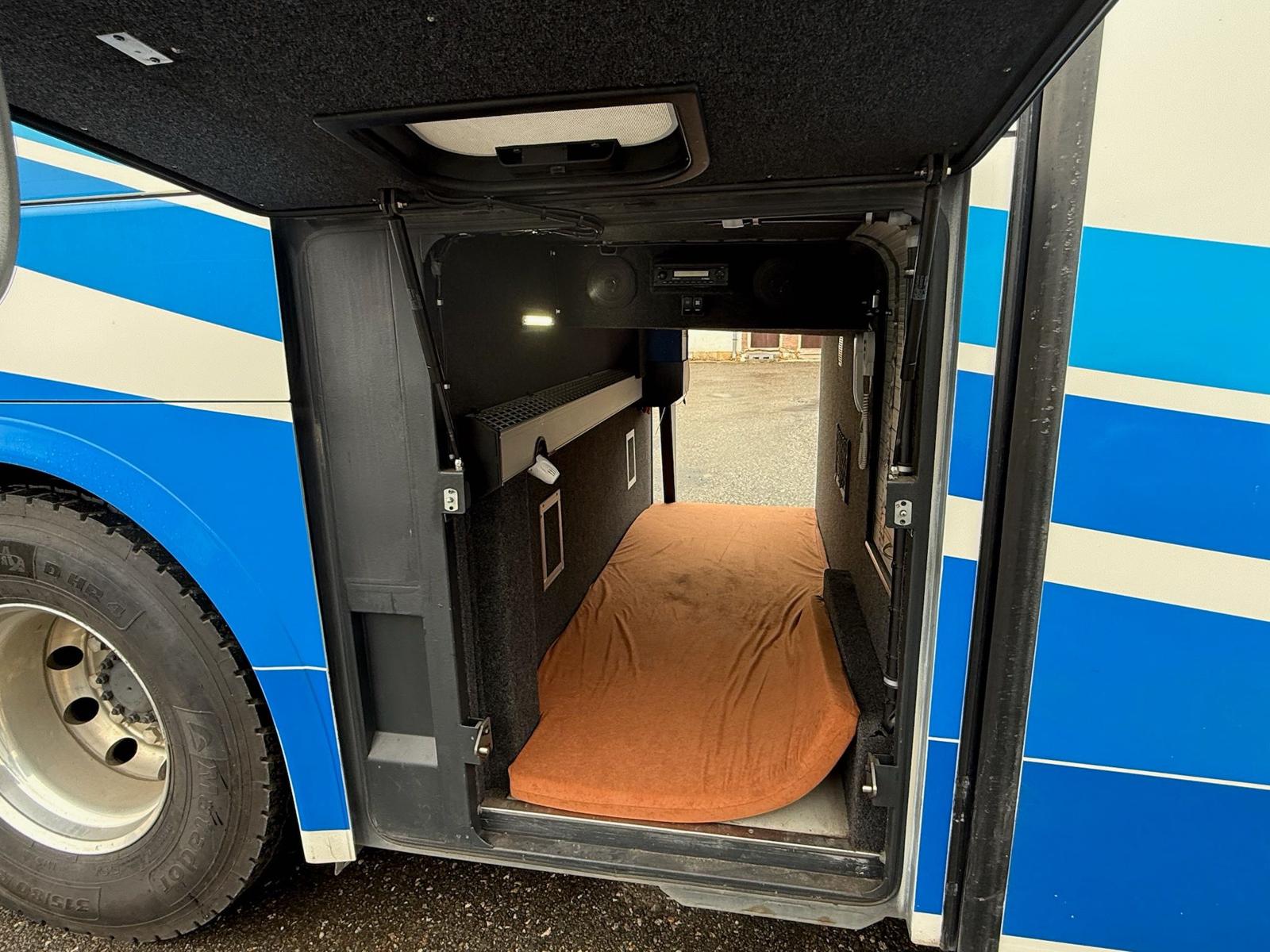 Coffee machine, Air conditioning, Cold store, Drivers sleeping compartment, DVD, TV , WC, Sleepers seats, Luxury seats, Seatbelts, Cruise control, Retarder, Auxiliary heating, Trailer coupling, Full service record, ABS, ASR, ESP, USB for passengers, ART: Adaptive Cruiser, FCG Collision Guard, SPA: Lane Assist, ABA 3: Active Brake Assist., BAS: Brake Assist., ATAS: Attention Assist., TMPS: Tire Preasure