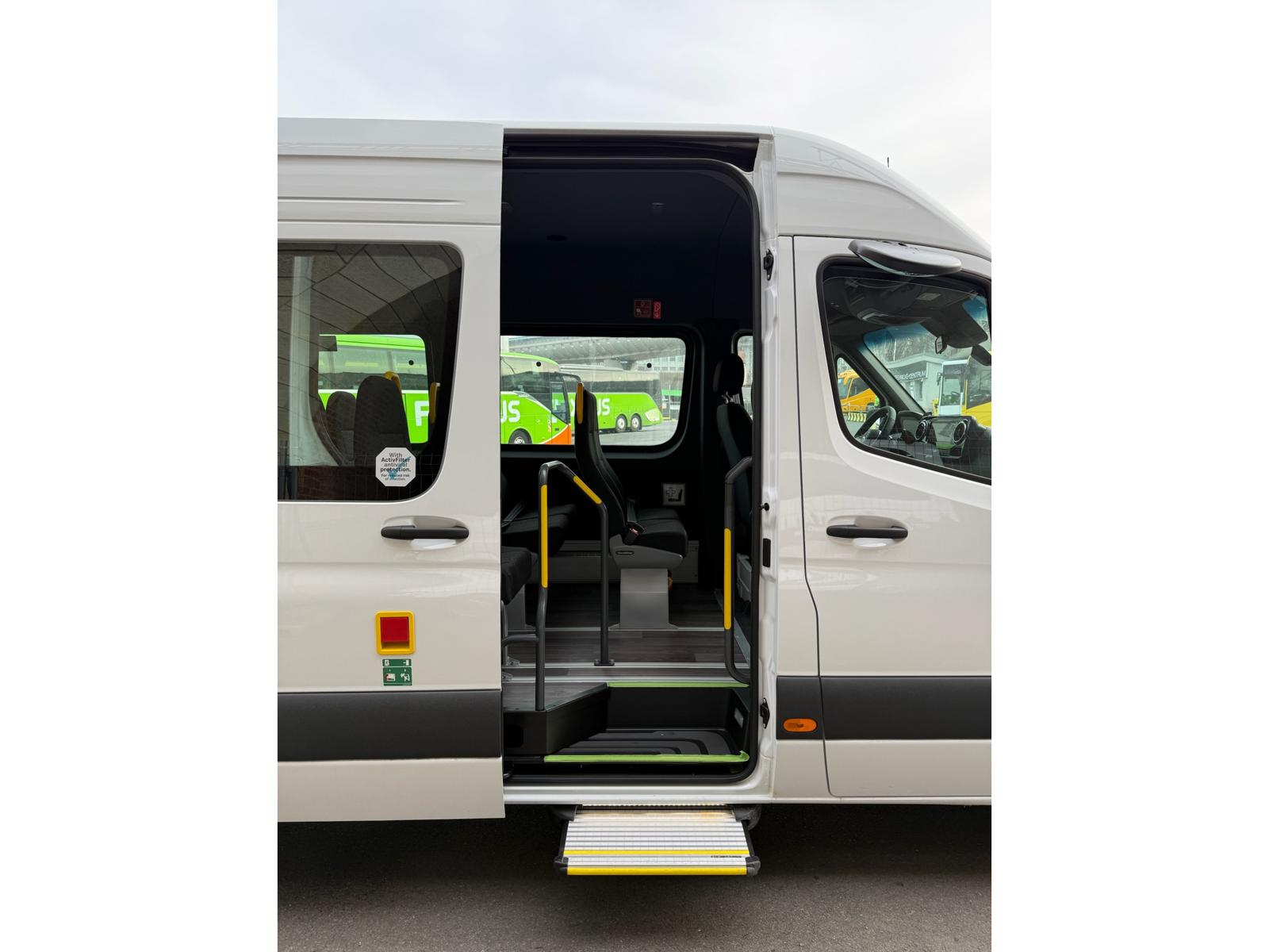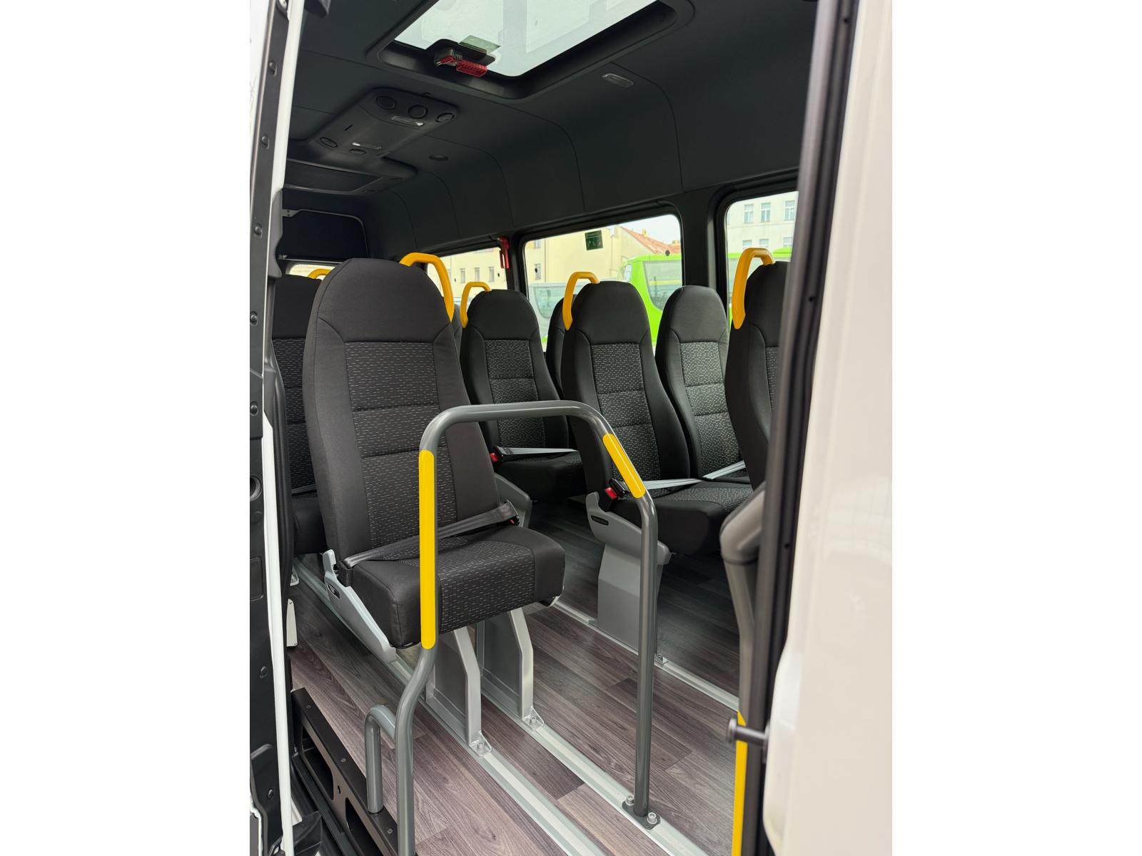 boční posuvné elektricky ovládané dveře, MBUX infotainment, elektricky nastavitelná vyhřívaná zpětná zrcátka, zadní parkovací kamera, odpružené a vyhřívané sedadlo řidiče, GSR II. NĚMECKÁ VÝROBA, CERTIFIKOVÁNO TAKÉ JAKO ŠKOLNÍ AUTOBUS NOVÝ s COC